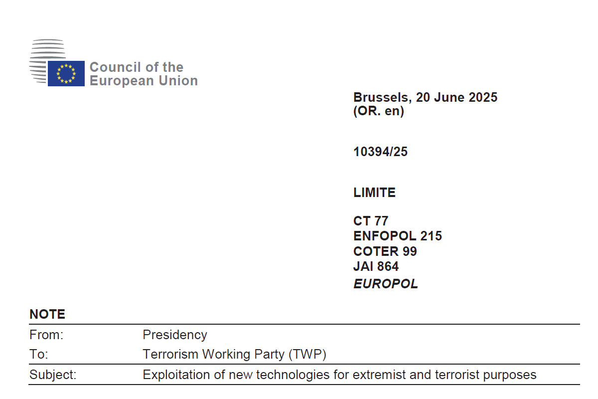 A note from the Polish presidency of the Council of the EU to the Terrorism Working Party, circulated on 20 June 2025.